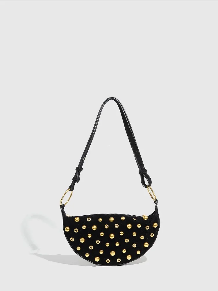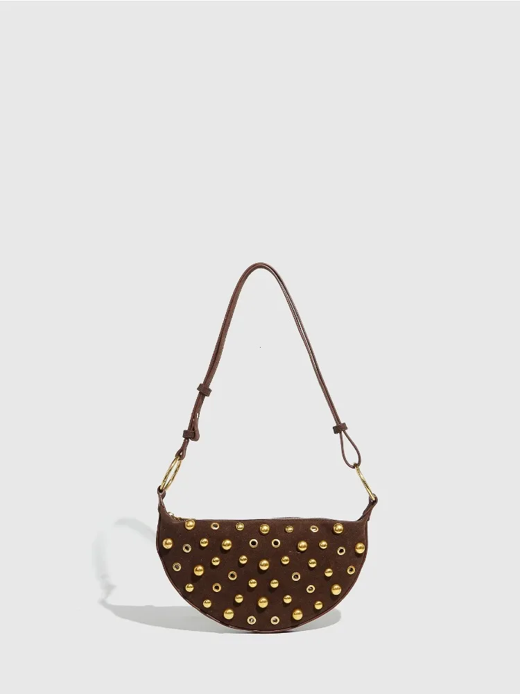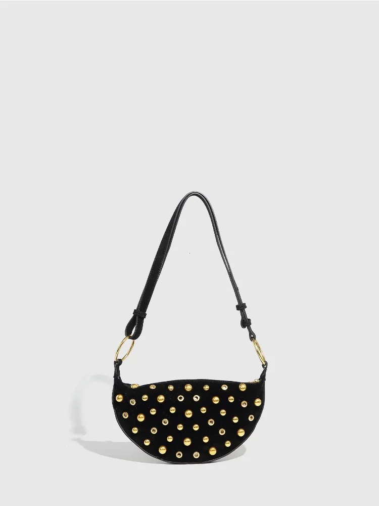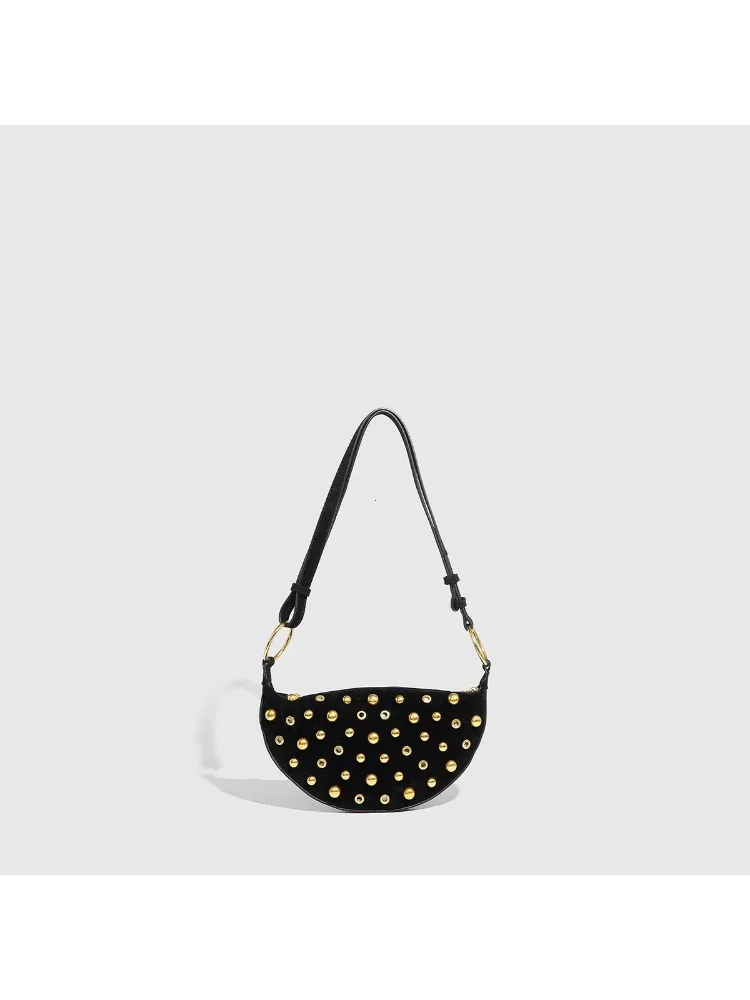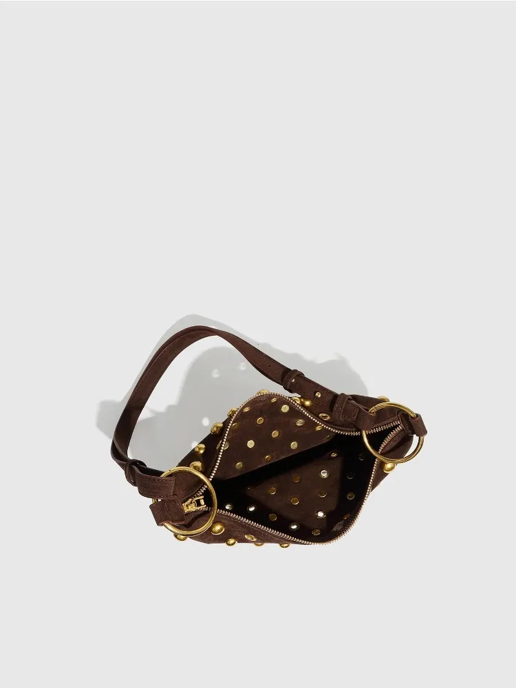 Shoulder bag. Studded body. Zipped interior pocket. Adjustable shoulder strap, can be worn as a crossbody. Metal charm with oval detail. Zip closure.